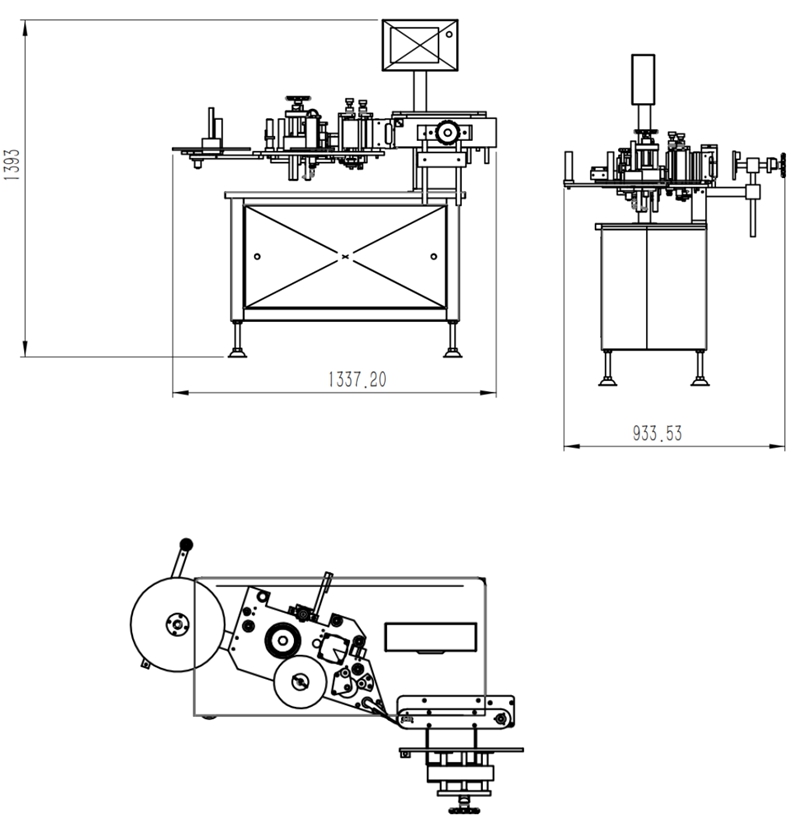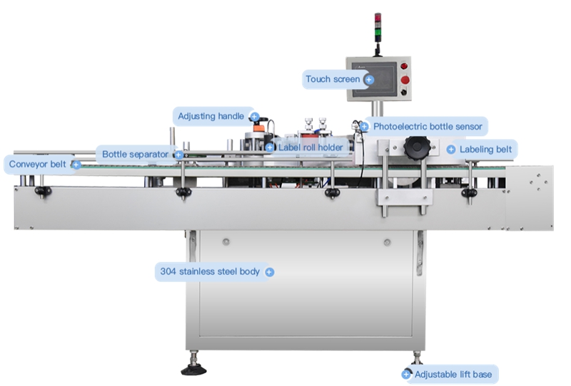 l Labeling station adjustment: According to different bottle height, user can adjust the height of labeling station with an adjusting handle, no need for any other tools.
