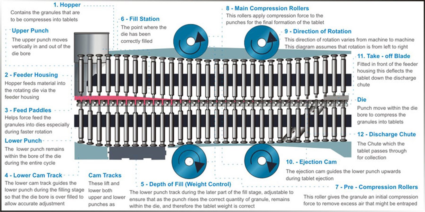 5. Powder suction device, which can absorb the powder in the tablet press chamber.